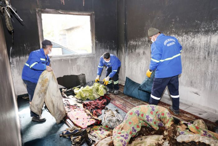 Yangının izlerini belediye ekipleri sildi...