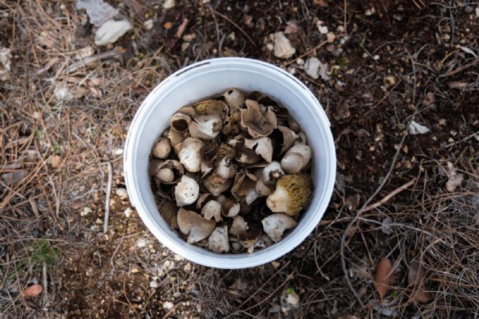Ormanlık alanda yetişen çukurçanak mantarları toplandı...