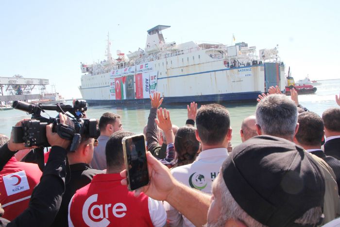 AFAD koordinasyonunda, 17 sivil toplum kuruluşunun desteğiyle hazırlanan insani yardım malzemelerini Gazze'ye ulaştıracak olan 17. İyilik Gemisi, İçişleri Bakanı Ali Yerlikaya'nın katıldığı törenle Mersin Limanı'ndan uğurlandı. Bakan Yerlikaya'nın yanı sıra AFAD Başkanı Ali Hamza Pehlivan, Mersin Valisi Atilla Toros, AK Parti Mersin Milletvekili Ali kıratlı, sivil toplum kuruluşu temsilcileri ve çok sayıda davetlinin katıldığı törende dualar eşliğinde uğurlanan Akdeniz isimli gemide  50 tırlık yaklaşık 900 ton gıda ve hijyen malzemelerinin yer aldığı belirtildi. Yardım malzemelerinin Gazze'ye ulaştıktan sonra AFAD ve Kızılay koordinasyonunda dağıtılacağı bildirildi.