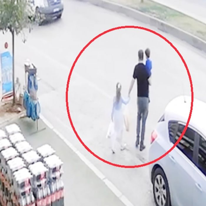 Baba ve çocuklarının hafif yaralandığı kaza, bir iş yerinin güvenlik kamerasınca kaydedildi. (aa)