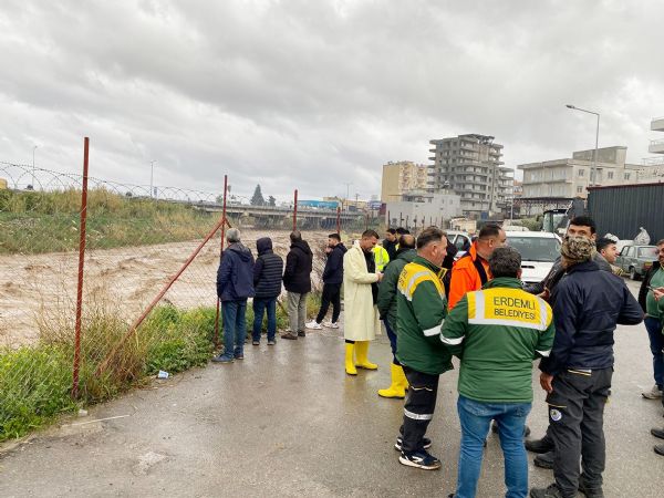 Kargıpınarı Mahallesi'nden geçen Gilindirez Çayı'nın debisinin yükselmesi üzerine çevresinde önlem alındı. Zabıta ekipleri vatandaşları dere yataklarından uzak durmaları konusunda uyardı. Erdemli Kaymakamı Aydın Tetikoğlu da dere çevresinde incelemelerde bulundu.
