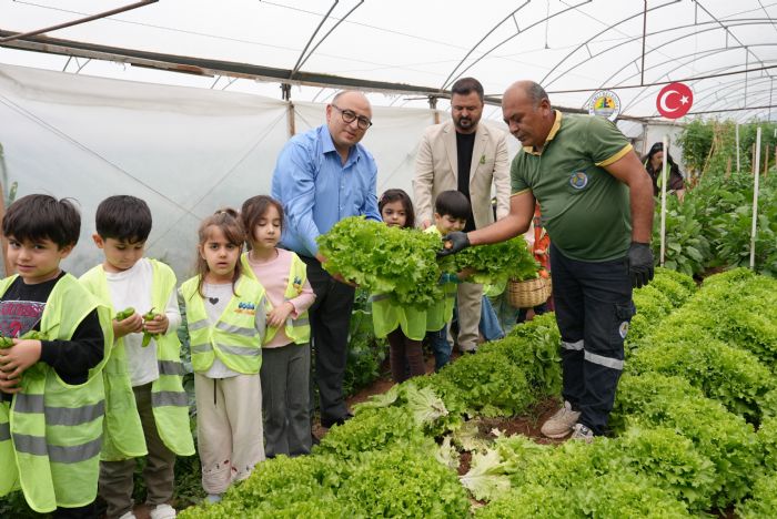 Çocuk serasında minikler yetiştirdikleri sebzeleri hasat ett...