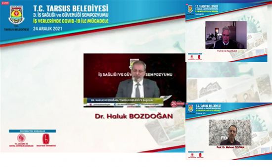 Tarsus Belediyesi, Aile, Çalışma ve Sosyal Hizmetler Bakanlığı İş Sağlığı ve Güvenliği Genel Müdürlüğü ve Hacettepe Üniversitesi Tıp Fakültesi Halk Sağlığı Anabilim Dalı’nın işbirliği ile “İş Sağlığı ve Güvenliği Sempozyumu’nun” üçüncüsünü çevrimiçi ortamda gerçekleştirildi. ‘’İş Yerlerinde Covid-19 ile Mücadele’’ konusunun ele alındığı sempozyumda aralarında Bilim Kurulu üyesinin de bulunduğu birçok uzman sunum yaptı.