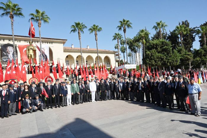 Daha sonra kutlamalar Cumhuriyet Alanı’nda sürdü. Mersin Valiliği, Akdeniz Bölge ve Garnizon Komutanlığı, Mersin Büyükşehir Belediyesi ile Muharip Gaziler Derneği’nin çelenginin Atatürk Anıtına sunulmasıyla başlayan kutlamalar, saygı duruşu ve İstiklal Marşı’nın okunması ile devam etti.