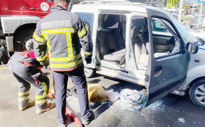 Mersin'de park halindeki araçtan dumanlar yükseldi, çevredeki bir esnafın müdahalesiyle yangın büyümeden söndürüldü.
