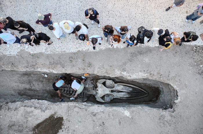 415 öğrenci ile çalışmayı sürüden proje koordinatörü MÜ Su Ürünleri Fakültesi Öğretim Üyesi Prof. Dr. Deniz Ayas," Fin balinasının kazısı devam ediyor. 415 öğrencimizin katılımıyla birlikte başladığımız kazı bugün dördüncü gününde. Dördüncü gün itibariyle kafa, boyun omurları ve göğüs bölgesinin tamamını toprak altından çıkarttık. Şimdi bel ve kuyruk omurları kısmı kaldı. İki gün içerisinde de tüm iskeleti müzemizin bahçesinde çıkartmayı planlıyoruz" ifadelerini kullandı. (iha)