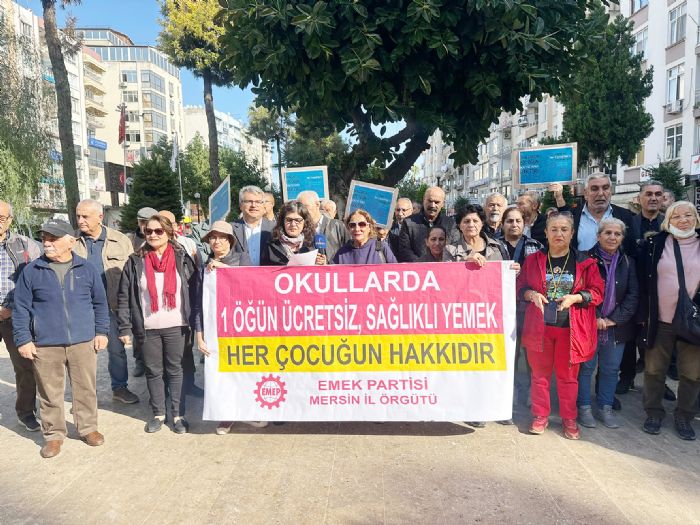 Emek Partisi (EMEP) Mersin İl Örgütü "Okullarda bir öğün ücretsiz sağlıklı yemek her çocuğun hakkı" kampanyası için sokağa indi. Özgür Çocuk Parkında bir araya gelen parti üyelerine çeşitli sivil toplum kurum kuruluş temsilcileri de destek verdi.