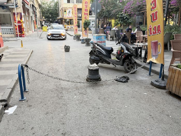 Esnaf Azad Yakışık, AA muhabirine, belediye görevlilerinin sokağın giriş ve çıkışına motorlu taşıtların girmemesi için zincir bariyer yerleştirdiğini söyledi.