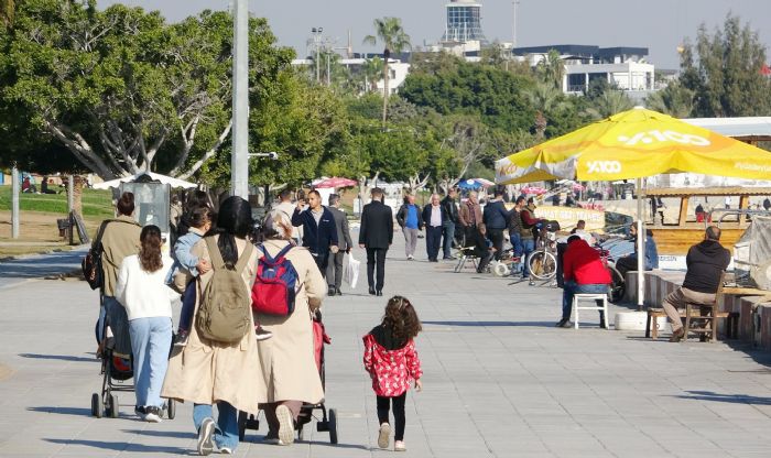 Millet Bahçesi plajında deniz kenarında vakit geçiren vatandaşlar, kimi zaman banklarda oturup sohbet etmeyi, kimi zaman ise yürüyüş yapmayı tercih etti. Kent genelinde mont yerine ince kıyafetlerle dolaşan vatandaşlar, kış mevsiminde olmalarına rağmen pastırma yazı havası yaşandığını dile getirdi.