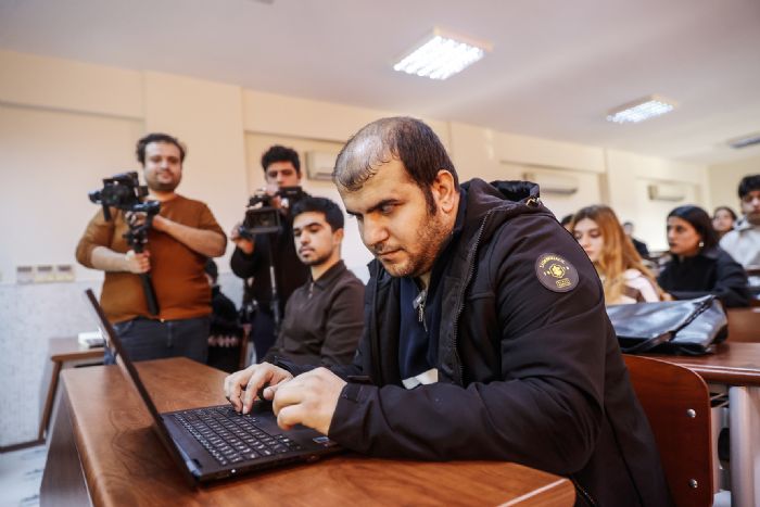 Mersin Valisi Atilla Toros, görme engelli üniversite öğrencisine ekran okuma programı desteğinde bulundu.