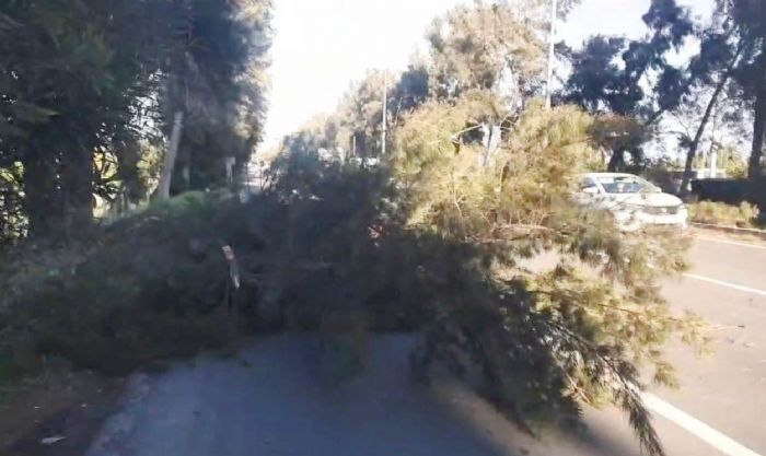 Mersin'in Erdemli ilçesinde şiddetli rüzgar nedeniyle kırılan ağaç yola devrildi, ulaşım kontrollü sağlandı.