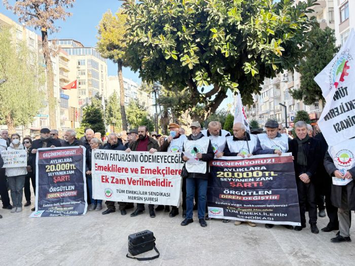 Mersin’de emekliler, artan hayat pahalılığı ve yetersiz maaş zamlarına karşı tepkilerini dile getirmek için yeniden sokağa indi. Son yapılan asgari ücret zamı sonrası emeklilere yapılacak zammın az olacağını bilen emekliler bu duruma tepki göstererek haklarını istedi. Açlık sınırının altın bir maaş ile insanların geçimi sürdürmesinin zor olduğuna vurgu yapan Tüm Emeklilerin Sendikası Mersin Şubesi “Emekliye açlık, yandaşa saltanat: bu yağma düzeni yıkılacak” sloganları eşliğinde Özgür Çocuk Parkında basın açıklaması yaptılar.