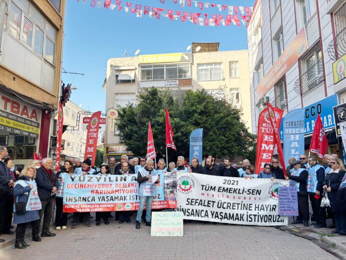 Türkiye Emekliler Derneği Mersin Şubesi ve 2021 Tüm Emekliler Sendikası Mersin Şubesi üyeleri, iktidarı hedef aldı.
