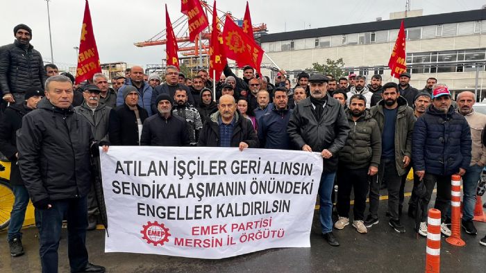 TÜMTİS Mersin Uluslararası Liman İşletmeciliği AŞ (MİP) önünde direnişlerini sürdüren işçilere Emek Partisi destek ziyaretinde bulundu. Parti İl Başkanı Sedat Başkavak, işçilerin mücadelesini selamlayarak şunları söyledi: “Değerli arkadaşlar, 2022’de iş bıraktığınızda da buradaydık, geçen hafta direnişin ilk gününde de buradaydık, bugün yine buradayız. Siz mücadelede bir arada ve dik durduğunuz sürece Emek Partisi, kentin emek ve meslek örgütleriyle birlikte yanınızda olmaya devam edecektir.”