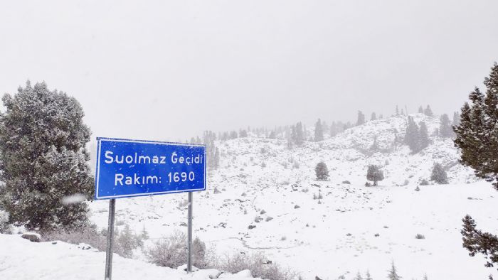 Abanoz Yaylası'nın 1690 rakımlı Suolmaz Geçidi'nde kar etkili oluyor.
