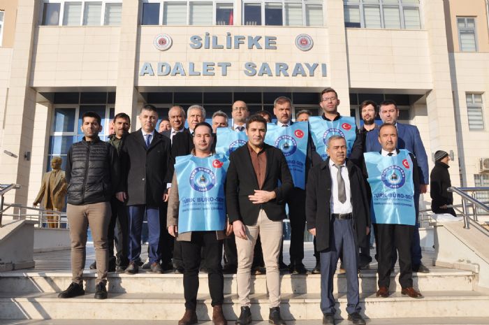 Olay sonrasında Türk Büro-Sen Mersin 2 No'lu Şube üyeleri Silifke Adliyesi önünde bir araya geldi.
