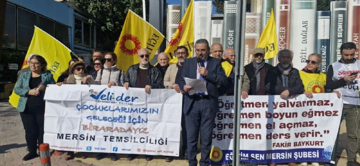 İl Milli Eğitim Müdürlüğü önünde basın açıklaması yapan Sendika Mersin İl Temsilcisi Nebil Birtek, “Emeğimizin sömürüldüğü bir dönemi daha geride bıraktık” diyerek, taleplerini dile getirdi.
