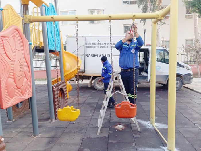 Ekipler tarafından parklarda bulunan ağaçlar mevsimine uygun şekilde budanırken, zarar gören kamelyalar, oturma grupları ve aydınlatma sistemleri onarılıyor. Zamanla yıpranan çocuk oyun grupları ise yenileriyle değiştirilerek çocukların güvenli ortamlarda oyun oynaması sağlanıyor. Bu kapsamda ilçe genelinde 12 parkta bulunan çocuk oyun grupları tamamen yenilenerek vatandaşların hizmetine sunuldu.