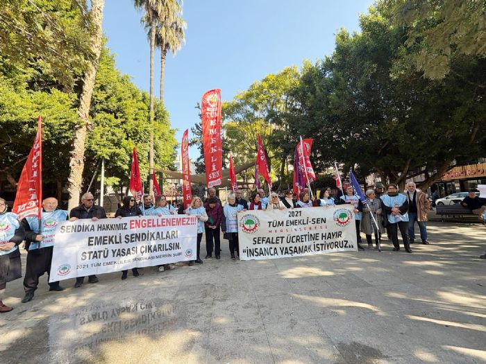 2021 Tüm Emekli Sen Mersin Şube üyeleri, “Gelirde adalet istiyoruz” sloganıyla Yoğurt Pazarında basın açıklaması yaparak bir kez daha iktidara seslendi.