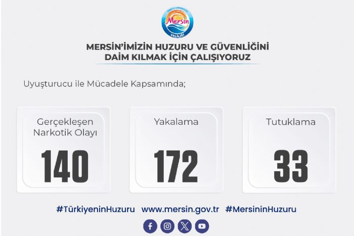 Yetkililer, Mersin’in huzur ve güvenliğini sağlamak adına uyuşturucu ile mücadelenin kararlılıkla sürdürüleceğini vurguladı.
