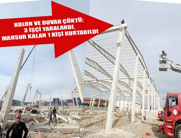 Mersin'de bir inşaat alanında meydana gelen kolon ve duvar çökmeleri sonucu 3 işçi yaralandı, 1 kişi ise mahsur kaldığı yerden itfaiye ekipleri tarafından kurtarıldı.
