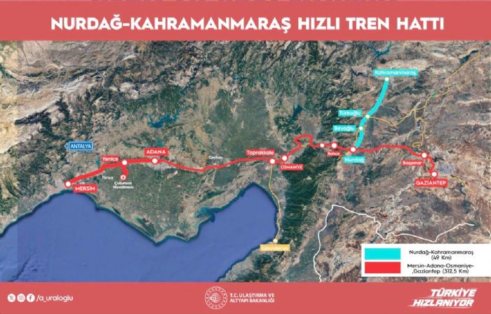 Söz konusu hattın, yapımı planlanan 235 kilometrelik Malatya-Narlı-Nurdağı Hızlı Tren Projesi'ne bağlanacağını belirten Uraloğlu, "Toplam 49 kilometre uzunluğunda planladığımız Nurdağı-Kahramanmaraş hızlı tren bağlantısının proje çalışmalarına devam ediyoruz. Proje çalışmalarını tamamladıktan sonra yatırım programına alarak, yapım çalışmalarını başlatmayı hedefliyoruz." ifadesini kullandı.