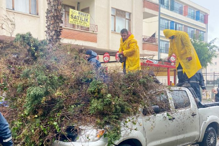 Vatandaşların belediyeye ait “Halk Masası” hattı üzerinden ilettiği talepler, stratejik bölgelerde hazır bekleyen ekiplerle anında paylaşıldı. Koordineli şekilde çalışan belediye ekipleri, fırtınanın etkilerini en aza indirmek için ilçenin dört bir yanında yoğun mesai harcadı. Belediye ekiplerinin gerçekleştirdiği çalışmalar kapsamında Çiftlikköy Mahallesi Anemon Oteli önünde devrilen ağaç kesilip kaldırıldı. Gökçebelen Mahallesi Gelişim Koleji’nde devrilen ağaç temizlenirken, İnönü Mahallesi Kushimoto Sokağı’nda ve Hürriyet Mahallesi Migros önünde devrilen ağaçlara da müdahale edildi. Palmiye Mahallesi 2. Cadde’de araç üzerine devrilen ağaç kesilerek kaldırılırken, Gazi Mahallesi Sağlık Parkı’nda kökünden sökülen ağaç ekipler tarafından temizlendi. Pirireis Mahallesi’nde ise devrilen bir ağacın otomobilin üzerine düşmesi sonucu araçta maddi hasar oluştu.