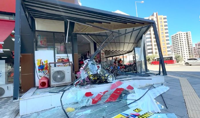 Mersin’de kaza yapan minibüsün iş yerine girmesi sonucu maddi hasar meydana geldi