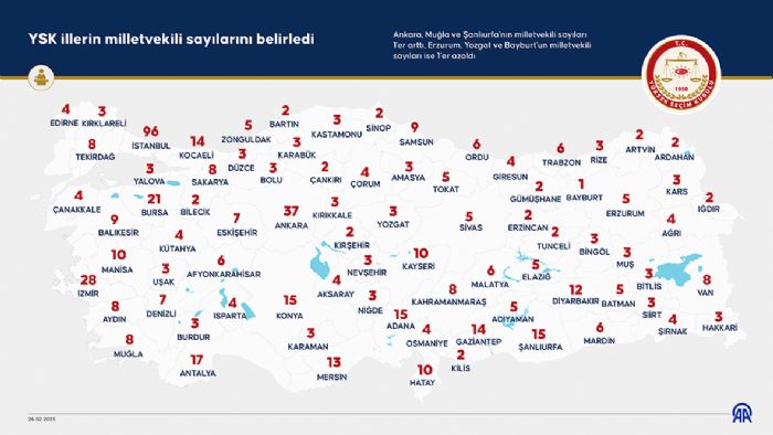 Bu kapsamda Türkiye İstatistik Kurumu Başkanlığınca 31 Aralık 2025 tarihli veriler esas alınarak ilan edilen 2025 yılı nüfus bilgilerine göre illerin çıkaracağı milletvekili sayısı hesaplandı.