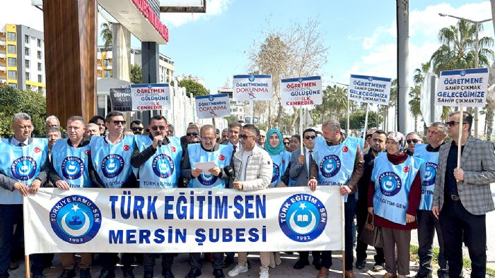 Mersin İl Milli Eğitim Müdürlüğü önünde bir araya gelen Türk Eğitim-Sen Mersin Şubesi üyeleri, eğitimcilere yönelik şiddete karşı eylem yaptı. Ellerindeki dövizler ve attıkları sloganlarla tepkilerini dile getiren eğitimciler, “Artık Yeter” dedi. Grup adına konuşan Türk Eğitim-Sen Mersin Şube Başkanı Metin Ercan, Türkiye ve eğitim camiasının bir kez daha yasa boğulduğunu vurgulayarak, “İstanbul'un Çekmeköy ilçesinde biyoloji öğretmeni olarak görev yapan Fatma Nur Çelik, bir öğrencisi tarafından hunharca katledilmiştir. Kıymetli öğretmenimize Allah'tan rahmet, ailesine, yakınlarına ve tüm eğitim camiamıza sabır ve başsağlığı diliyoruz. Aynı saldırıda yaralanan Zeynep Aybars Taşdemir öğretmenimize ve öğrencimize de acil şifalar temenni ediyoruz. Eğitim çalışanlarına yönelik şiddet, gerekli ve kalıcı tedbirler alınmadığı takdirde ne yazık ki son olmayacaktır. Yaşanan elim hadise adeta ‘geliyorum’ demiştir. Merhume öğretmenimizin disiplin kurulunca güvenliklerinin bulunmadığını dile getirdiği ifade edilmektedir. Buna rağmen etkili önlemlerin alınmamış olması, sorumluluğun ne denli ağır olduğunu gözler önüne sermektedir. Bugün okullarımızda öğretmenlerimizin ve eğitim çalışanlarımızın can güvenliği ciddi bir tehdit altındadır. Eğitim çalışanlarına yönelik şiddet, taciz ve mobbing vakaları artarak devam etmektedir. Öğretmenlik Meslek Kanunu'nda öğretmenlerin şiddetten korunmasına yönelik düzenlemeler yapılmış olması çok kıymetlidir. Buna göre; faile verilen cezalar yarı oranında artırılırken, hapis cezasının ertelenmesi hükümleri de uygulanmamaktadır. Ancak yaşanan olaylar bu müeyyidelerin tavizsiz uygulanması gerektiğini bir kez daha ortaya koymaktadır” dedi.