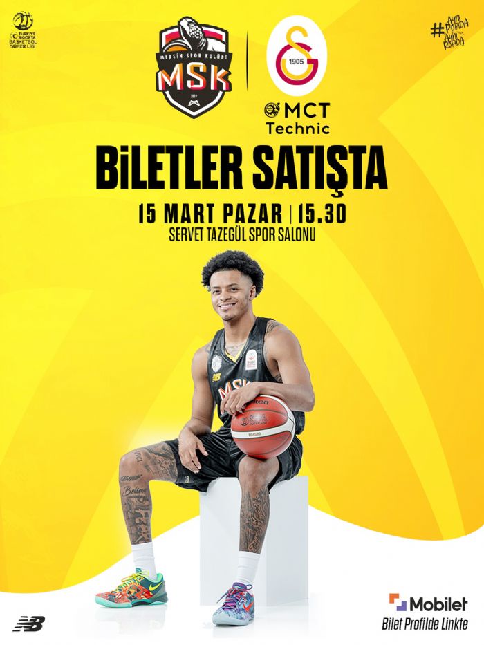 Kulübün sosyal medya hesaplarından yapılan paylaşımda, “15 Mart Pazar günü saat 15.30’da, Servet Tazegül Spor Salonu’nda Galatasaray MCT Technic’i konuk edeceğimiz karşılaşmanın biletleri Mobilet üzerinden satışa sunulmuştur. Mobilet platformuna ulaşmak ve maç bileti satın almak için detaylı link Instagram bio’da. Bu salon Mersin’in, bu güç hepimizin” ifadeleri kullanıldı.