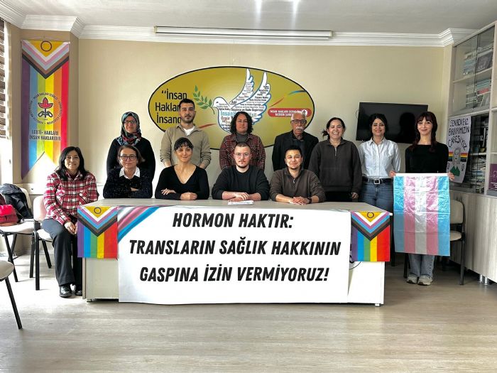 İnsan Hakları Derneği (İHD) Mersin LGBTİ+ Komisyonu ile Muamma LGBTİ+ Derneği, düzenledikleri basın toplantısında hormon erişiminin fiilen engellendiğini savunarak “Hormon haktır, sağlık hakkımız gasp edilemez” açıklamasında bulundu. İHD Mersin Şubesi’nde gerçekleşen basın açıklamasını okuyan Utku Kutbay, 20 Kasım 2024’ten bu yana Türkiye’de transların hormona erişimini hedef alan sistematik bir kısıtlama sürecine tanıklık ettiklerini belirterek, “Önce erişimi zorlaştıran idari düzenlemelerle başlayan bu süreç, bugün geldiğimiz noktada hormon ilaçlarına erişimin fiilen engellenmesine kadar ilerledi. Biz translar için hormon destek süreci keyfi bir tercih değil; fiziksel, ruhsal ve sosyal iyilik halimizin temel bir parçasıdır. Hormona erişimin engellenmesi sadece sağlık hakkına erişimin engellenmesi değildir aynı zamanda; bedenlerimiz, yaşamlarımız ve geleceğimiz üzerinde kurulan politik bir denetimdir. Sağlık hizmetleri bilimsel ilkeler, tıbbi etik ve insan hakları temelinde yürütülmesi gereken kamusal hizmetlerdir. Ancak bugün sağlık politikaları, iktidar tarafından transların yaşamlarını, hayatta kalma koşullarını tehdit eden ideolojik müdahalelerin aracı haline getirilmiştir. Bizler bu açıklamayı son bir yılda adım adım hayata geçirilen bu kısıtlama sürecini görünür kılmak, sorumlulara açıkça seslenmek ve hormon hakkımızdan vazgeçmeyeceğimizi ilan etmek için yapıyoruz” dedi.