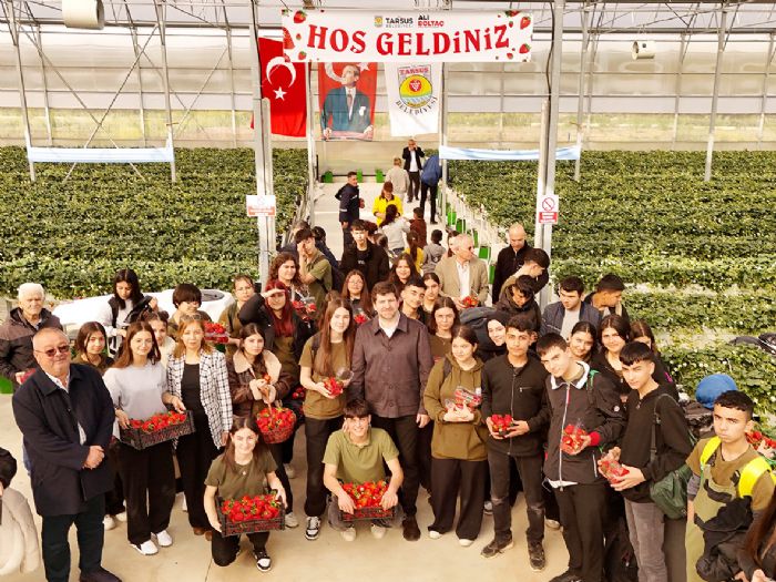 Program sonunda Başkan Boltaç, öğrencilerle birlikte hasat edilen çilekleri konuklara ikram etti.