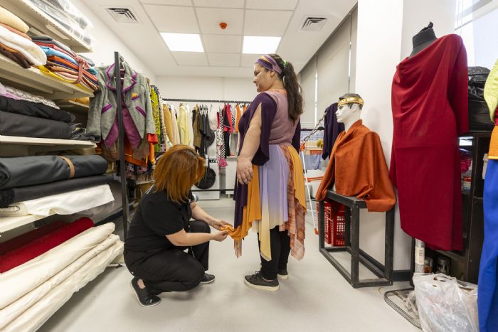 Mersin Şehir Tiyatrosu kostüm dikim atölyesinde görev yapan terzi ve kostüm sorumlusu Emine Ekici, kostüm atölyesinin 2022 yılında kurulduğunu anlatarak, “Bütün oyunlarımızın kostümlerini burada üretiyoruz. Kesim, dikim, tadilat, geri dönüşüm, ne gerekiyorsa hepsini kendi atölyemizde yapıyoruz. Mersin Şehir Tiyatrosu kostüm atölyemizde, 14 oyun için yüzlerce kostüm ve dekor aksesuar, kukla ürettik” dedi.
