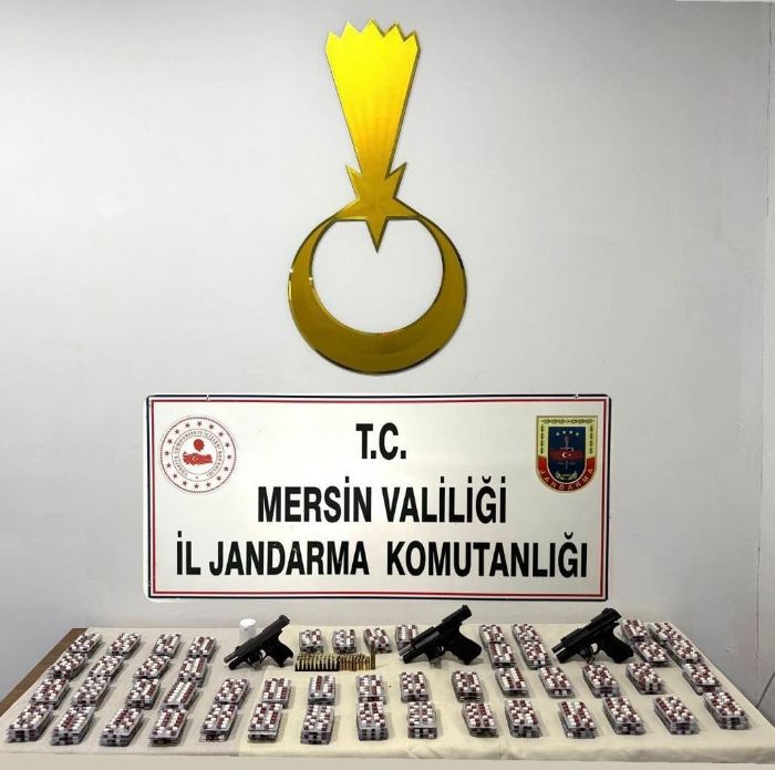 Jandarma ekipleri Toroslar ilçesinde 2 şahsın uyuşturucu madde ticareti yaptığını tespit etti. Tespit edilen şüphelileri takibe alan ekipler, düzenlediği operasyon ile şüpheli şahısları yakalayarak gözaltına aldı. Gözaltına alınan şüphelilerin evlerinde ve araçlarında yapılan aramada ele geçirilen 4 bin 156 adet sentetik hap, 3 tabanca, 3 şarjör ile 105 tabanca fişeğine el konuldu.