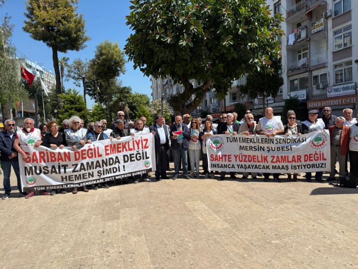 Her gün kadınların öldürüldüğü, çocukların taciz ve tecavüze uğradığı, halkın doğru haber alma özgürlüğünü yerine getiren gazetecilerin tutuklandığı, çevresine, doğasına sahip çıkan çevrecilerin cezalandırıldığı, hak arayan sendikacıların, işçilerin işinden uzaklaştırıldığı, eğitimin cemaat yuvalarına dönüştürüldüğü, sağlık hizmetinin, parası olanın yararlandığı bir ülkede değil, laik, demokratik kamucu ve özgürlükçü bir cumhuriyetle yaşamak, yaşlanmak istiyoruz. Ortadoğu’ya ABD emperyalizmin sömürü hırsı kan ve gözyaşından başka bir şey getirmemiştir. Ülkemizin emperyalistlerin payandası olmasını istemiyoruz. Çünkü ABD ve İsrail’in yürüttüğü saldırgan politikalar; uluslararası hukuku hiçe sayan, halkların yaşam hakkını tehlikeye atan ve bölgeyi emperyalist çıkarlar doğrultusunda yeniden şekillendirmeyi amaçlayan bir müdahale hattının devamıdır. Bu nedenle savaşa da baskıya da hayır diyoruz. Kahrolsun emperyalizm. Kahrolsun sömürgeci politikalar. Bizi açlığa, yoksulluğa mahkum etmeye çalışanlara karşı duracağız. Bu sahte tabloyu kabul etmiyoruz. 12 Nisan Pazar günü saat 15.00 de Mersin İdman Yurdu Meydanın başlayacak ve Özgecan Meydanında tamamlanacak olan ‘sefalet zulmüne son’ mitingimize emeklileri, emekçileri ve tüm halkı gerçekleri birlikte dile getirmeye, bu adaletsiz düzene karşı birlikte mücadele etmeye çağırıyoruz. Çünkü bu ülke hepimizin, bu yaşam bizim” şeklinde konuştu.