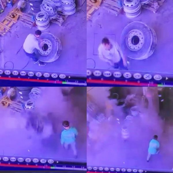Olay anı ise güvenlik kamerasına yansıdı. Görüntülerde lastiği tamir etmeye çalışan Ali Doğan iğneyi almak için arkasını döndükten kısa süre sonra lastiğin bomba gibi patladığı anlar yer aldı. (iha)